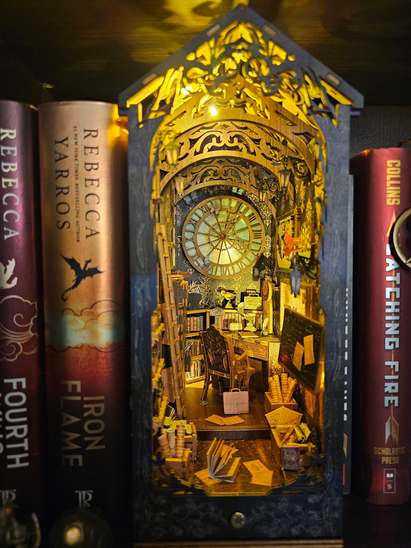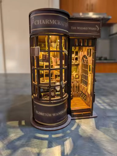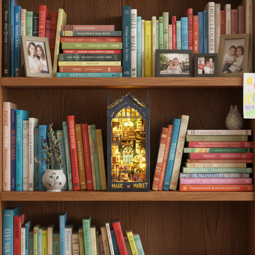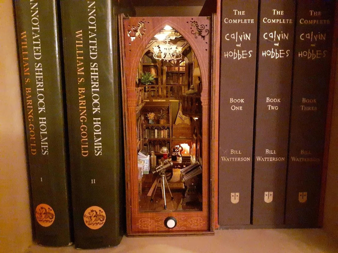 Unsere DIY-Miniatur-Bausätze sind handgefertigte Miniaturwelten, die zwischen deine Bücher passen – detailverliebt, beleuchtet und zum Selberbauen. Jede Szene ist inspiriert von bekannten Filmszenen, magischen Welten oder ikonischen Orten und lädt dich ein, in eine andere Welt einzutauchen. Erfahre hier mehr über unsere "Book Nooks" (Buch-Nischen).