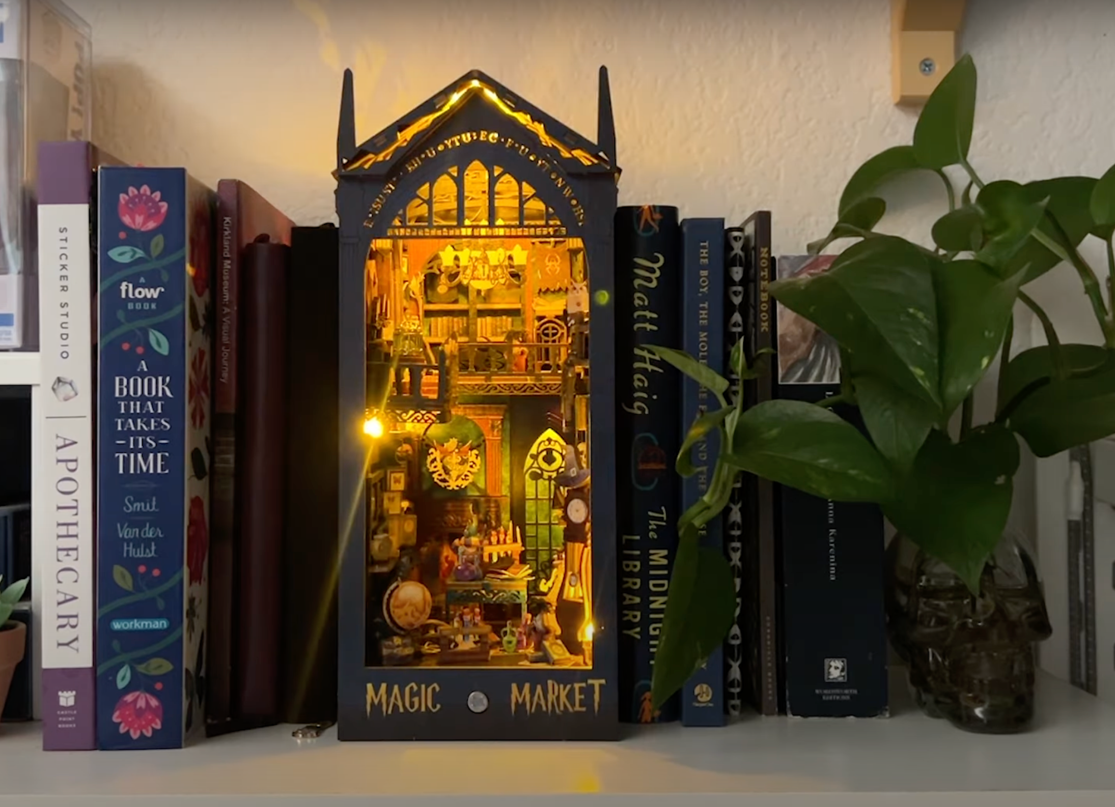 Hier siehst du, wie man eine Buchnische Schritt für Schritt zusammenbaut & wie schön sie dann zwischen deinen Büchern im Regal aussieht.