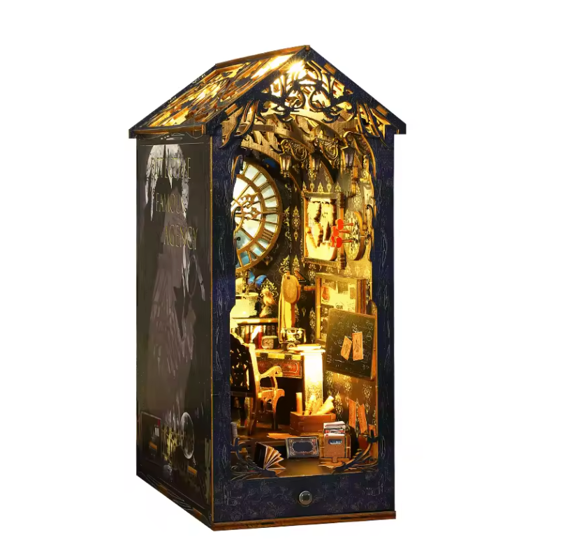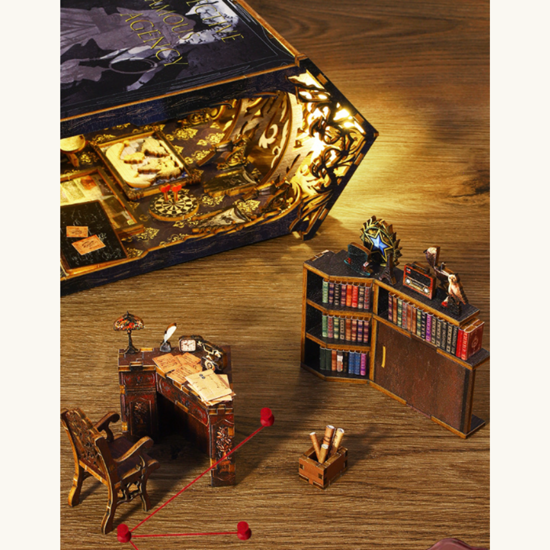 Dieses Holzsteckpuzzle ist dein DIY-Fall: Du baust Szene für Szene deinen eigenen Ermittlungsraum. Und wenn du fertig bist, steht die perfekte Buchnische für dein Regal vor dir – ein echter Hingucker für alle Krimi-Fans.