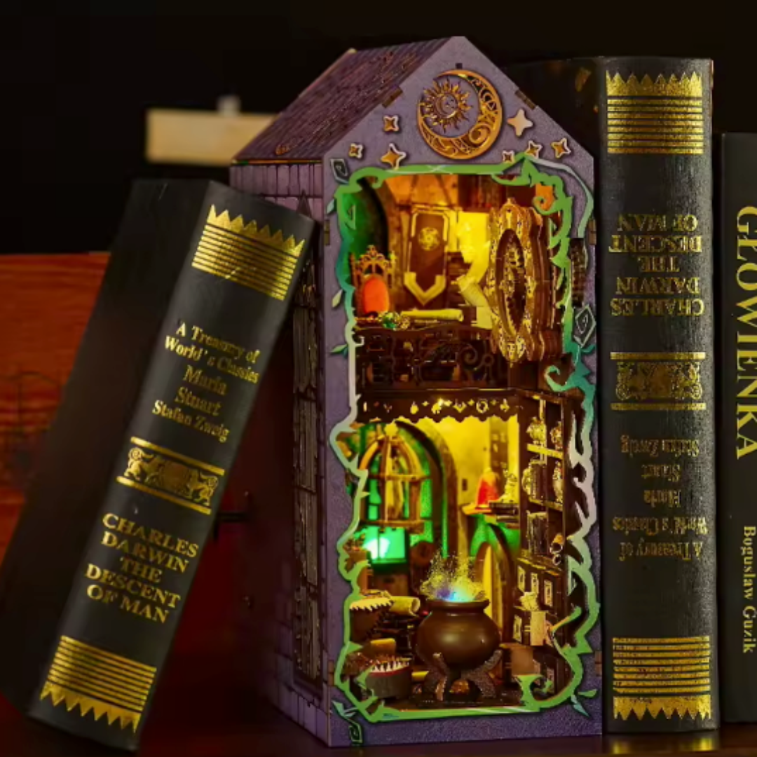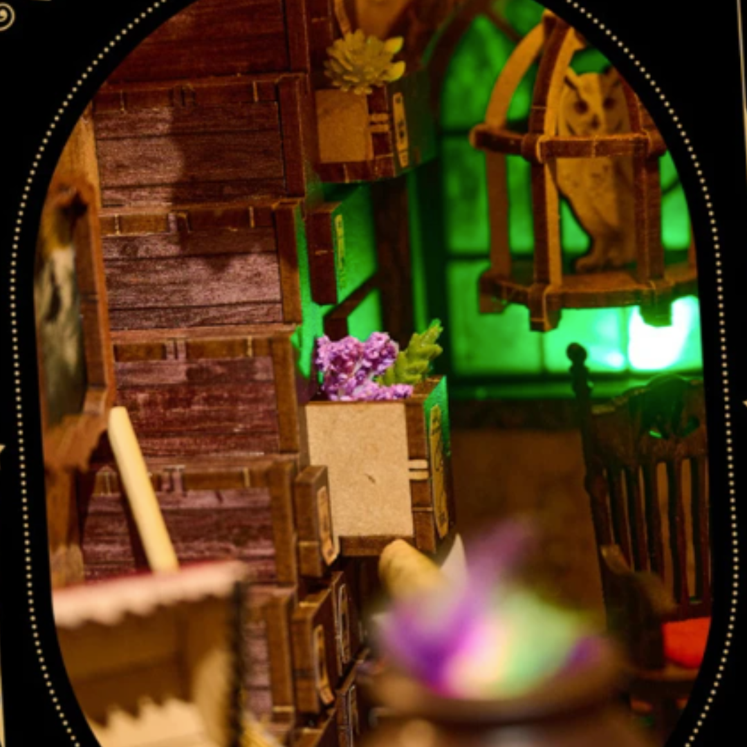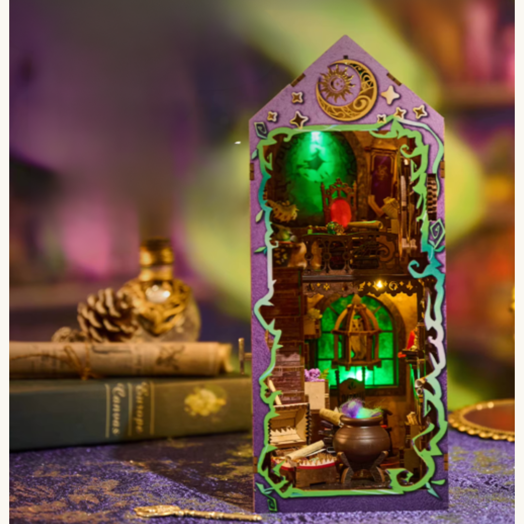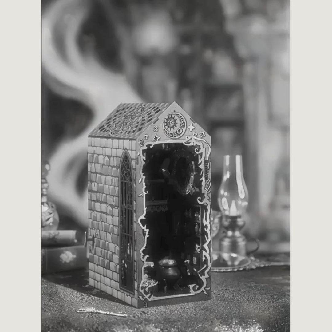 Tritt ein in die geheimnisvolle Welt eines alten Zaubermeisters – mit dieser zauberhaften DIY Buchnische voller Magie, Tränke und verborgener Artefakte.