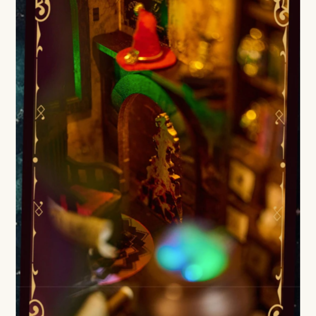 Ob Zaubertrankkessel, Eulen, Zauberstäbe oder magische Bücher – jedes Detail erinnert an die versteckten Läden einer berühmten Zaubergasse und weckt nostalgische Erinnerungen an fantastische Welten.