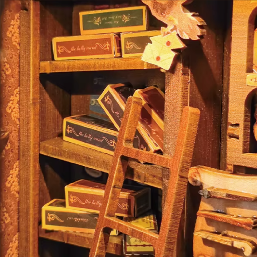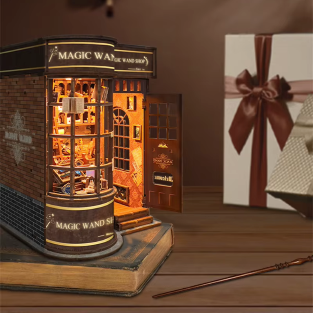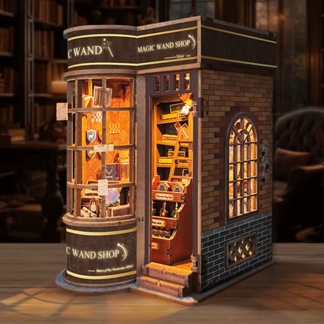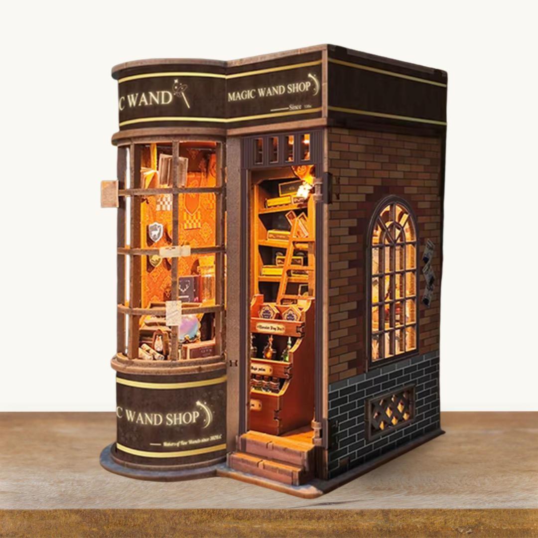 Verwandle dein Bücherregal in einen geheimnisvollen Zauberstabladen im Miniaturformat: Mit diesem 3D-Holzsteckpuzzle baust du dir Stück für Stück ein kleines Geschäft voller magischer Auswahl – mit hohen Regalen, stapelweisen Schachteln, winzigen Details und der Atmosphäre, als würde gleich der perfekte Zauberstab „dich auswählen“.
